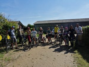 De laatste dag fietsen was de langste fietstocht. Die warme dag fietsten we naar Roggebotstaete, nabij Kampen. Onderweg zijn veel pauzes gehouden om bij te komen van het warme weer en het fietsen.